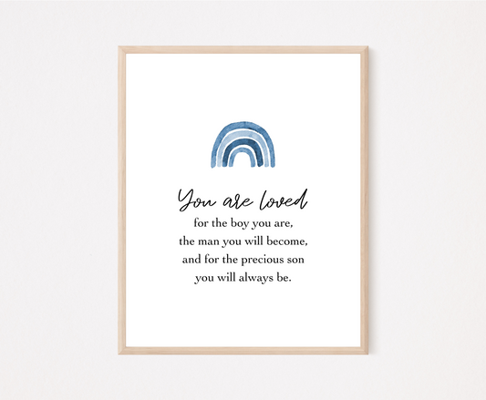 You Are Loved For The Boy You Are Vertical Print - Blue Rainbow