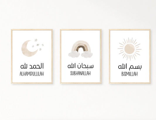 Bismillah, Alhamdullilah, Subhanallah Prints (Set of 3)