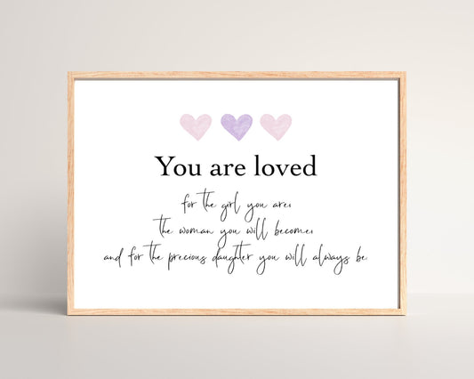 You Are Loved for the Girl Horizontal Print - Pink and Purple Hearts