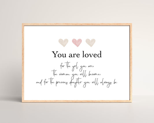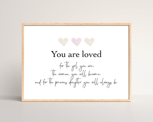 You Are Loved for the Girl Horizontal Print - Beige and Pink Hearts