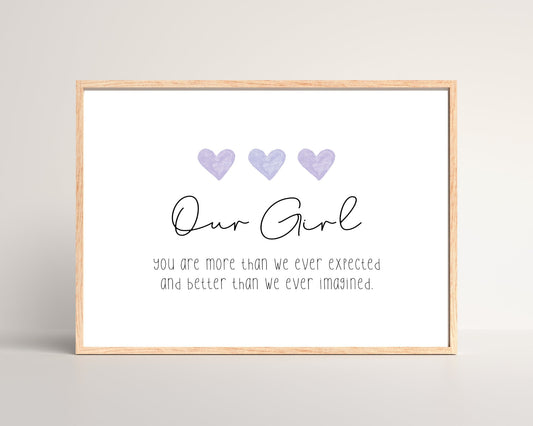 Our Girl You Are More Horizontal Print - Purple Hearts