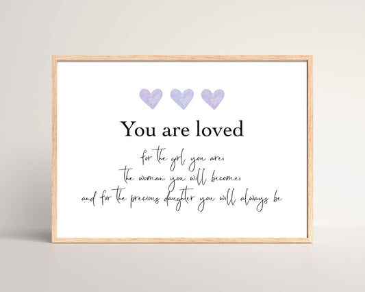 You Are Loved for the Girl Horizontal Print - Purple Hearts