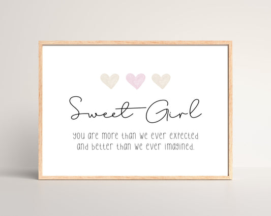 Sweet Girl You Are More Horizontal Print - Beige and Pink Hearts