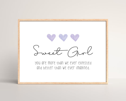 Sweet Girl You Are More Horizontal Print - Purple Hearts