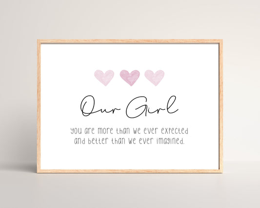 Our Girl You Are More Horizontal Print - Pink Hearts