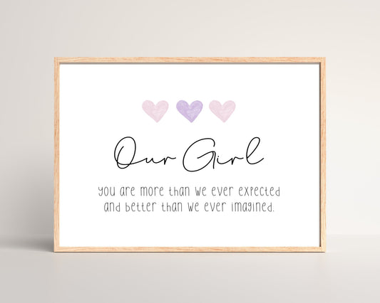 Our Girl You Are More Horizontal Print - Pink and Purple Hearts