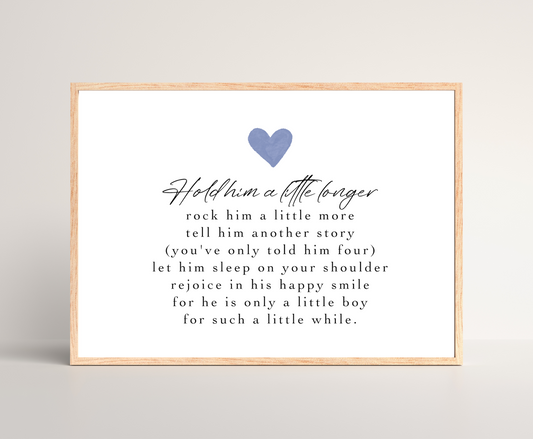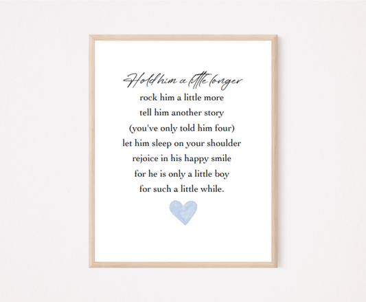 Hold Him A Little Longer Vertical Print - Blue Heart