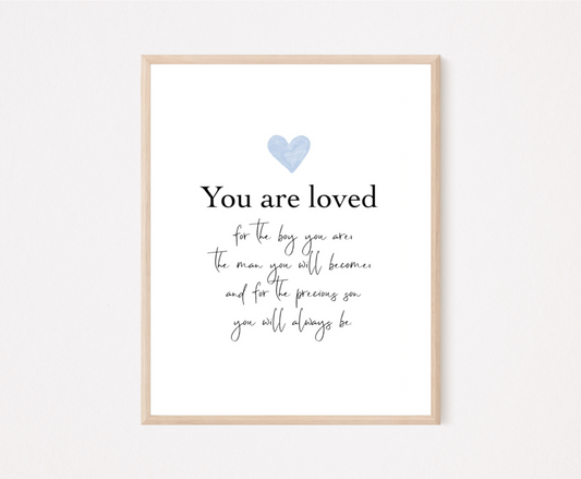 You are Loved for the Boy You Are Vertical Print - Blue Heart