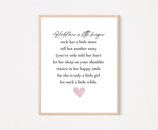 Hold Her a Little Longer Vertical Print - Pink Heart