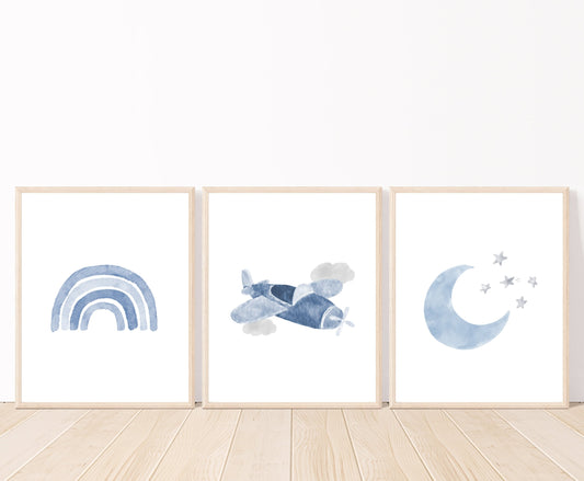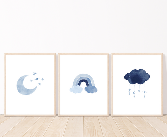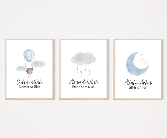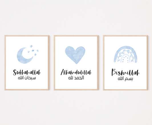 Subhanallah, Alhamdullilah, and Bismillah Prints Set of 3 - Blue